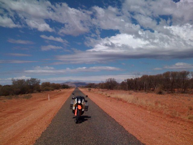 Meanwhile I am glad I spent the time prepping the bike, and I am glad to have obtained new tires in Alice. Another motorcyclist I met in Alice actualy turned back after starting the Tanami, but I met yet another chap today who was coping splendidly. Actually he had met the guy with the fired up KTM below, and the story was again confirmed that I am riding a bike that is likely to catch fire if I crash badly.