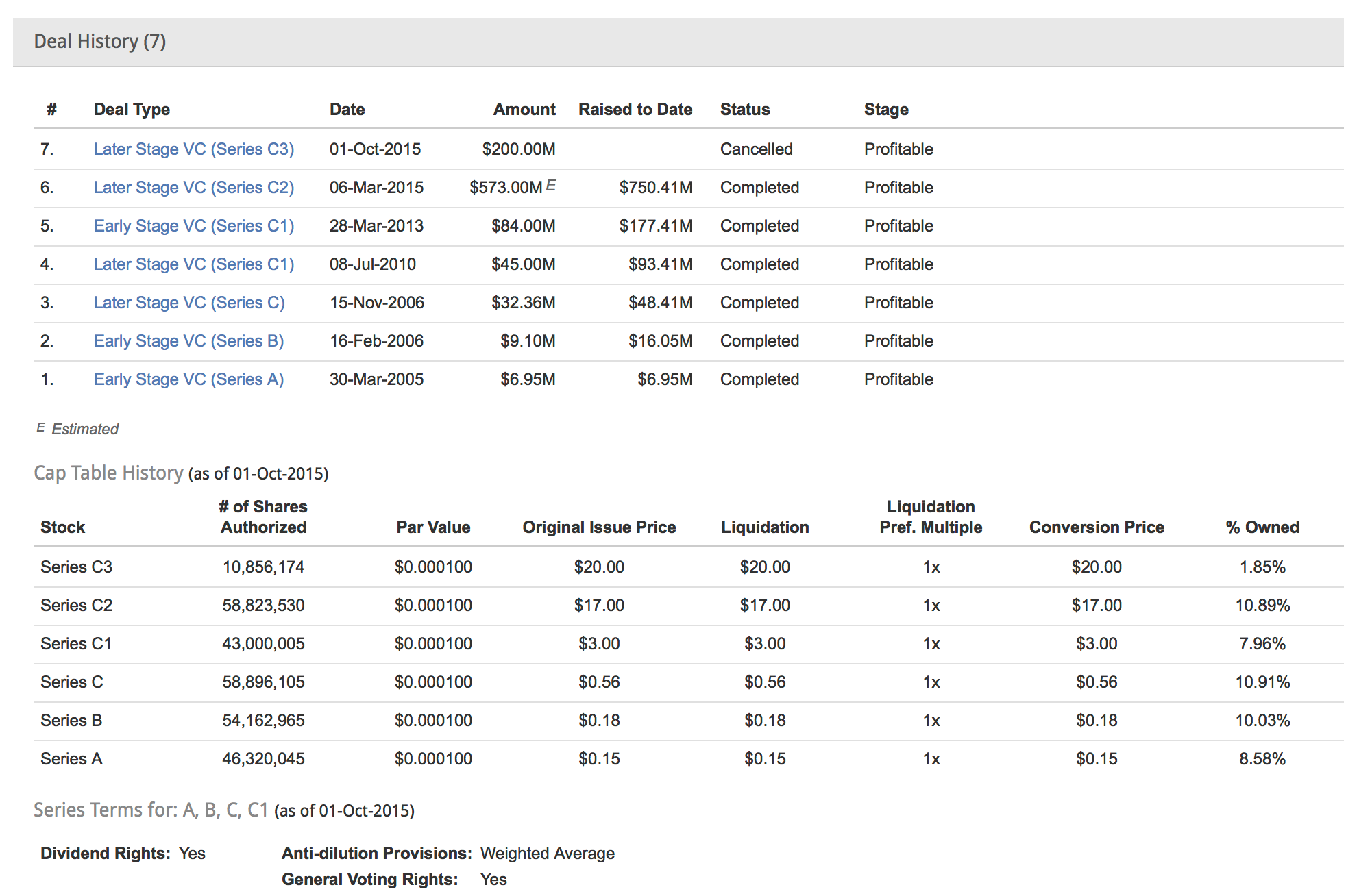 The last round of VC investors into Theranos makes for somber reading. In March 2015 Theranos raised an estimated US$573 million for their 6th round, making a total of $750 million raised. Their 7th round, for $200m, has apparently blown up before completion. Theranos was selling a blood testing service that apparently needed tiny amounts of blood to work.